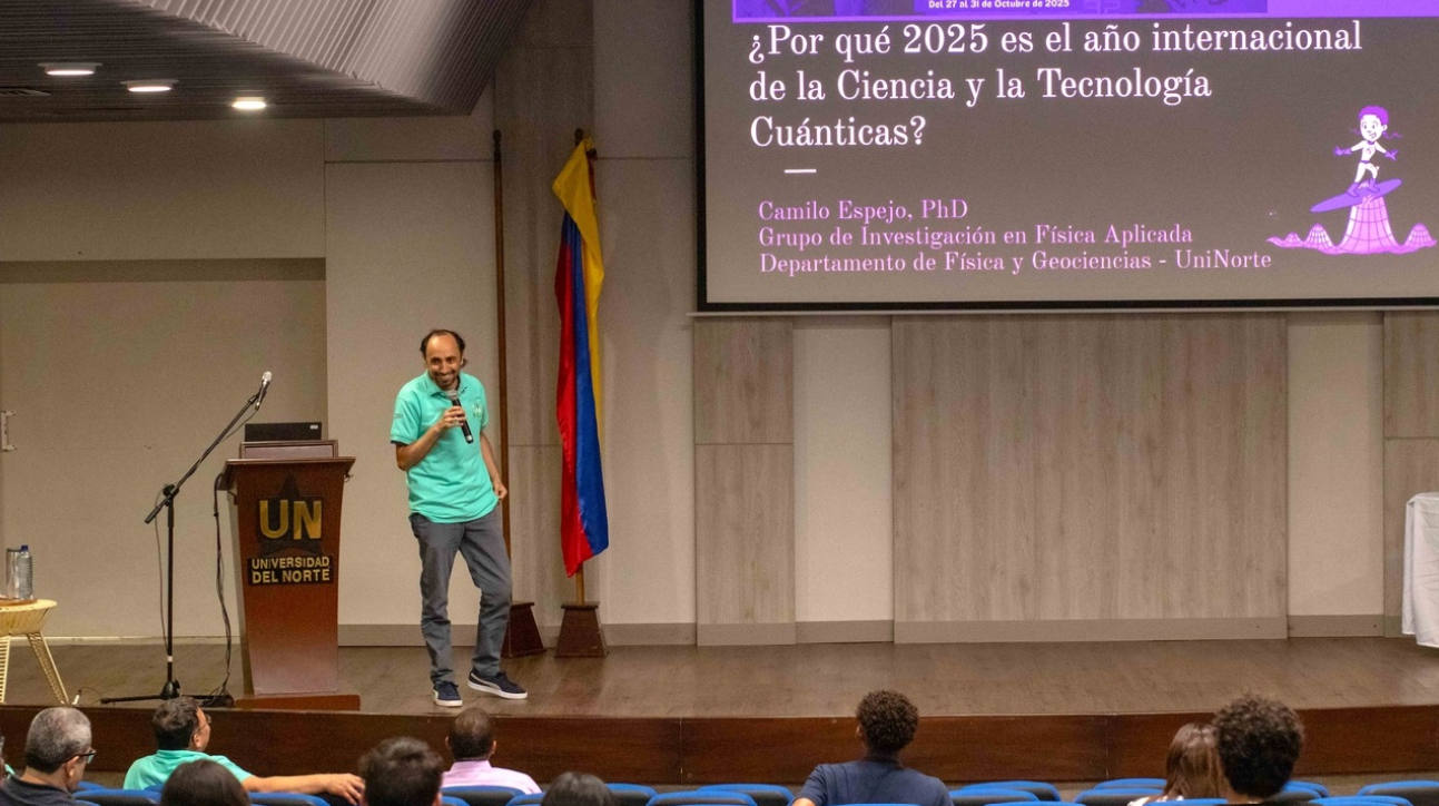 ¿Qué tienen en común un rayo láser, un teléfono móvil y un panel solar? La respuesta está en la mecánica cuántica. Con esa premisa, la Universidad del Norte inauguró el lunes, 27 de octubre, la doceava edición de Geoexpofísica, la feria académica organizada por el Departamento de Física y Geociencias, cuya programación conmemora en esta ocasión el Año Internacional de la Ciencia y la Tecnología Cuánticas.